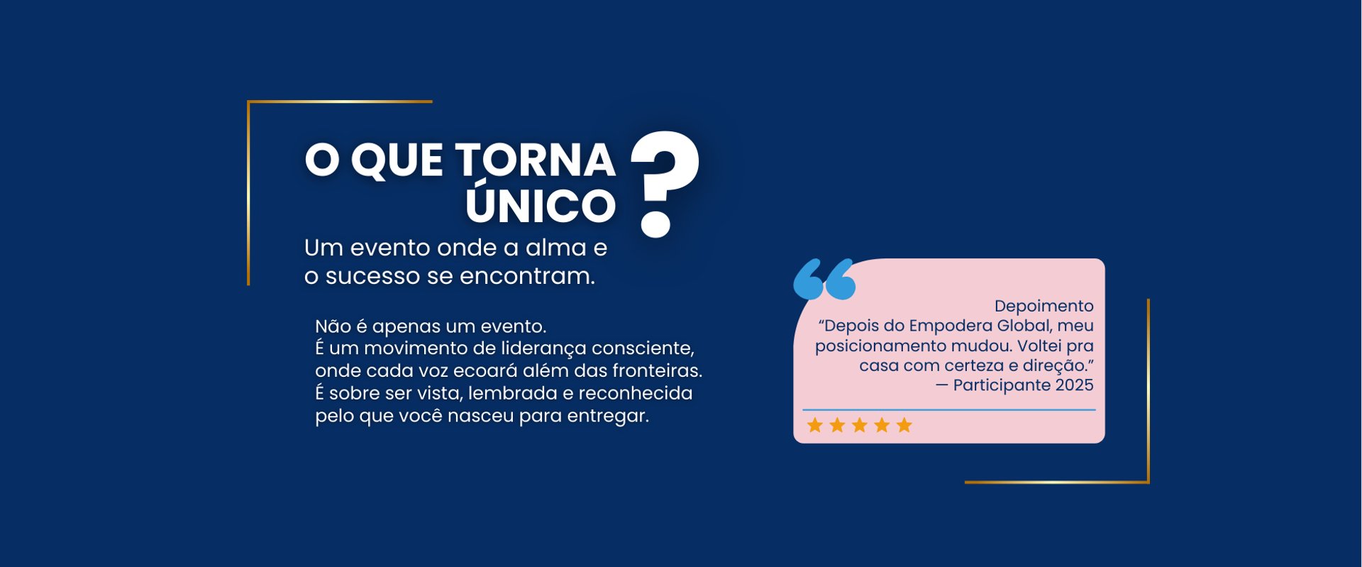 Dois dias de imersão, luxo e propósito.